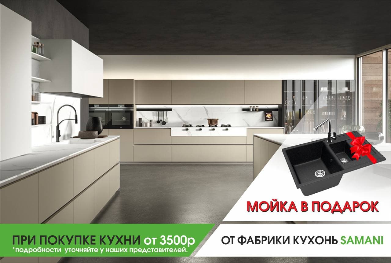 При заказе кухни от 3500 бел. рублей Вы получаете мойку из искусственного камня в подарок!
